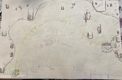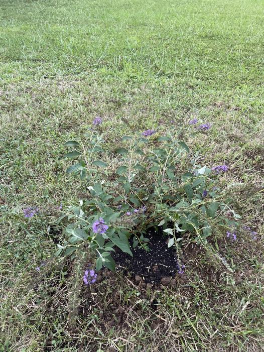 I didn’t draw the front yard because there’s more shade, but we do have a lot of sunlight on the side of our house. We’ll be planting a fruit tree that ways, but also I completed our first in-ground planting here! A beautiful butterfly bush! I even saw a hummingbird moth on it earlier. Absolutely awesome.
