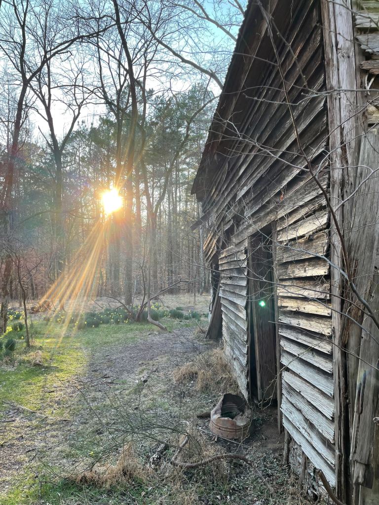 On this trail, there is an abandoned house (img. 4, 5) amidst a daffodil field. A quiet place of serenity. Birds flitted and chirped, a place of deep meditation and exploration into a history of times past. Lastly as we climbed past the crisped, frozen weeds, our walk shortened toward our destination atop a last sunlight dappled hill (img. 6).